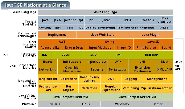 以上是根据各个组成部分的功能来进行划分的,如果按照技术所服务的领域来划分,或者说按照Java技术关注的重点业务领域来划分,Java技术体系可以分为四个平台,分别为: