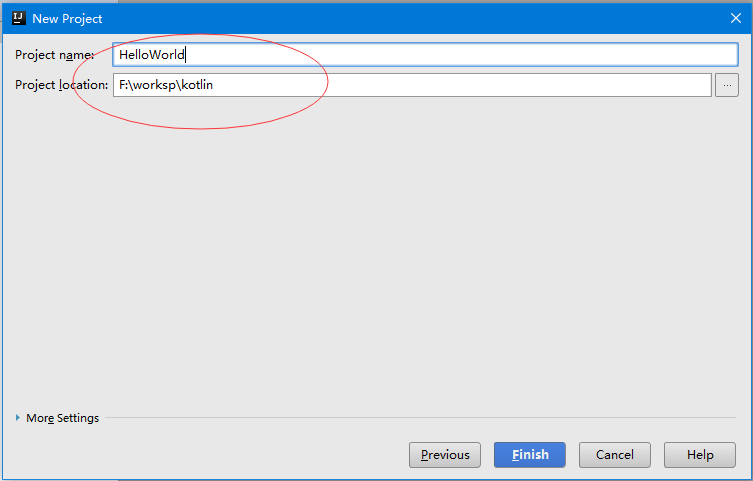 输入项目的名称:HelloWorld,点击完成(Finish),如下图所示 -