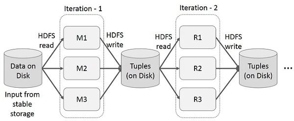 注 − 如果分布式存储器(RAM)足以存储中间结果(该作业状态),那么它将存储这些结果的磁盘上。