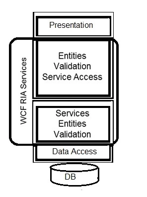 WCF RIA服务主要是基于WCF服务的标准版本。要了解有关WCF RIA Services的更好的方式,如下图所示的架构,WCF RIA服务有重点。 DB在这里为数据库中的缩略形式。