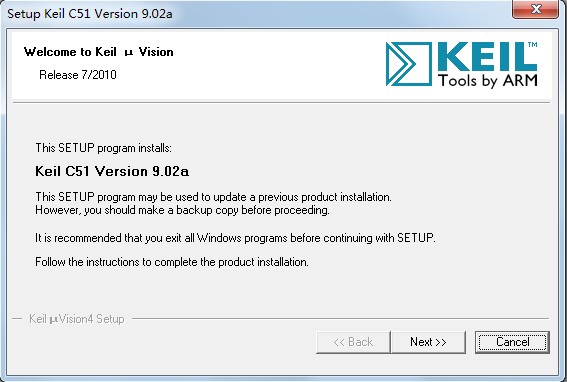 1) 首先准备 Keil uVision4 安装源文件,双击安装文件,弹出安装的欢迎界面,如图1-1所示。