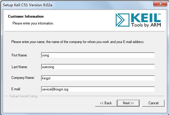 4) 点击“Next”按钮,弹出“Customer Information”对话框,如图1-4所示。大家输入用户名、公司名称以及 E-mail 地址即可。
