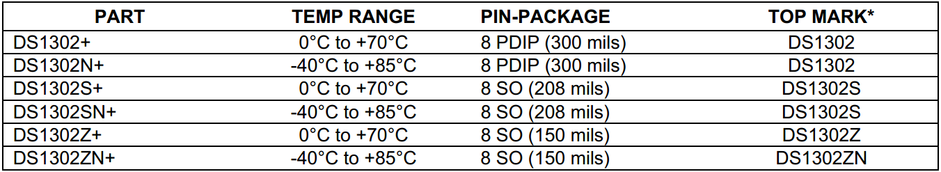 我们平时所用的不管是单片机,还是其它一些电子器件,根据使用条件的约束,可以分为商业级和工业级,主要是工作温度范围的不同,DS1302 的购买信息如下图15-4所示。