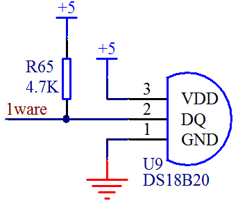DS18B20 是美信公司的一款温度传感器,单片机可以通过 1-Wire 协议与 DS18B20 进行通信,最终将温度读出。1-Wire 总线的硬件接口很简单,只需要把 DS18B20 的数据引脚和单片机的一个 IO 口接上就可以了。