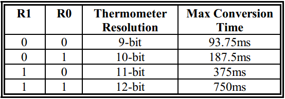 当我们发送一个启动温度转换的指令后,DS18B20 开始进行转换。从转换开始到获取温度,DS18B20 是需要时间的,而这个时间长短取决于 DS18B20 的精度。
