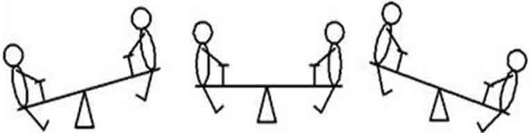 从严格意义上来讲,其实所有的信号都是差分信号,因为所有的电压只能是相对于另外一个电压而言。但是大多数系统,我们都是把系统的 GND 作为基准点。而对于 A/D 来说的差分输入,通常情况下是除了 GND 以外,另外两路幅度相同,极性相反的输入信号,其实理解起来很简单,就如同跷跷板一样。如图17-8所示。
