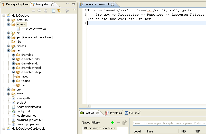 在 Cordova 创建 Eclipse 的 Android 工程,做了两个特殊的设置: