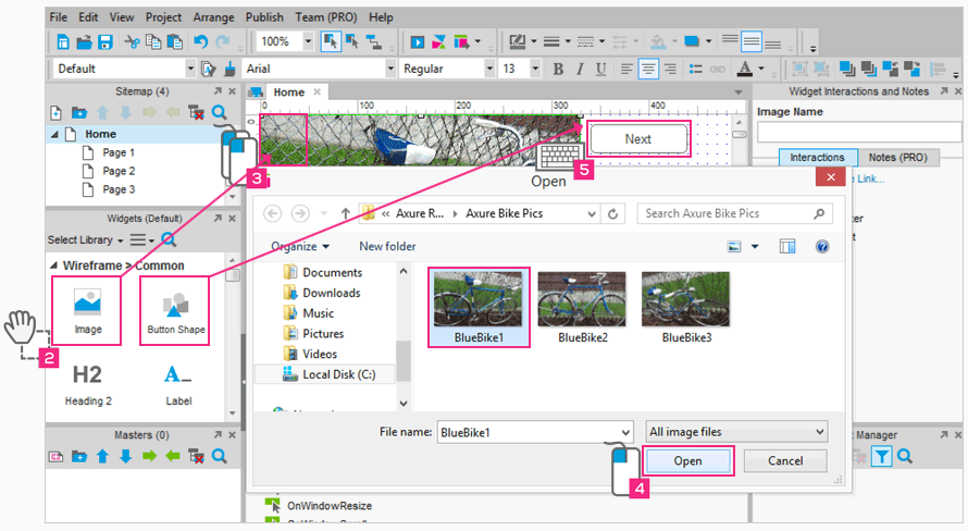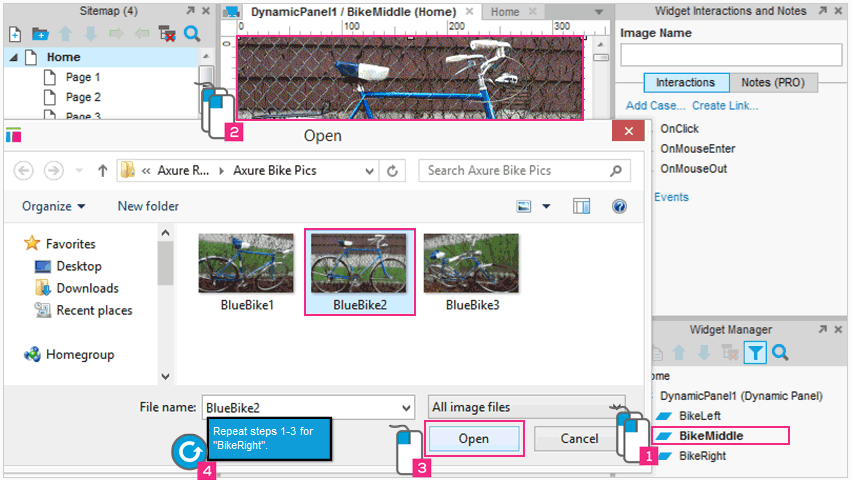 下载“AxureBikePics.zip”并解压缩文件夹的图片在你的计算机上。如果你喜欢你可以用自己的图像。