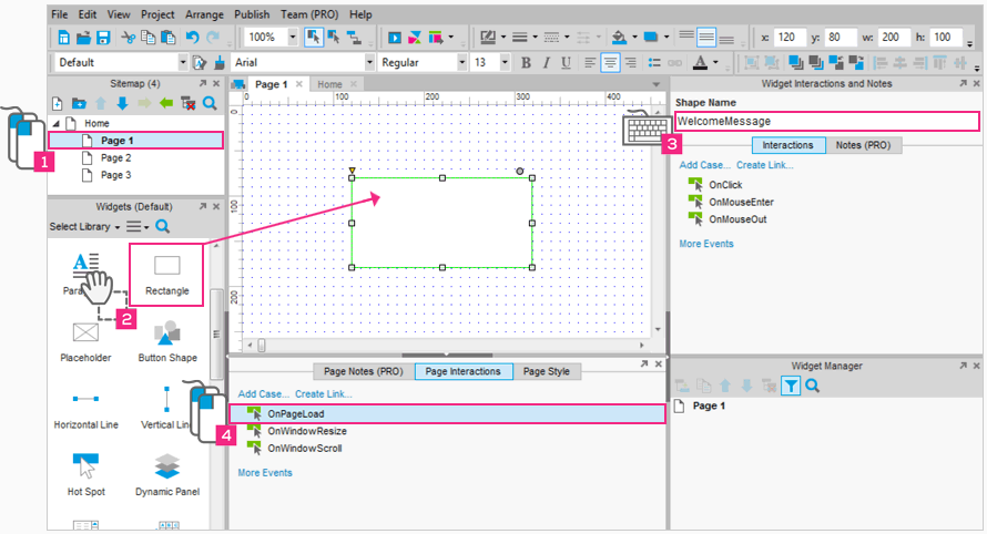 双击“页面交互”选项卡中的 OnPageLoad 事件。