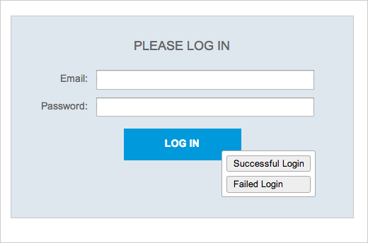 点击工具栏的预览按钮来预览原型。你将看见当你点击 Login 按钮时会出现两个按钮。点击 Successful Login 会进入 My Account 页面,而点击 Failed Login 会显示错误信息。