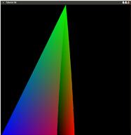 Vertices[0] = Vector3f(-1.0f, -1.0f,0.0f); Vertices[1] = Vector3f(0.0f, -1.0f, 1.0f); Vertices[2] = Vector3f(1.0f, -1.0f, 0.0f); Vertices[3] = Vector3f(0.0f, 1.0f, 0.0f);为了便于展示如何实现顶点共享,我们需要一个稍微复杂的网格模型。为此很多教程使用著名的旋转立方体。这个模型需要 8 个顶点和 12 个三角形。鄙人稍懒就用旋转的锥体来代替。它仅需要 4 个顶点和 4 个三角形,并且更易于手动生成。