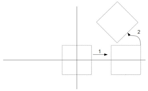 现在我们再看看先平移再旋转发生了什么: