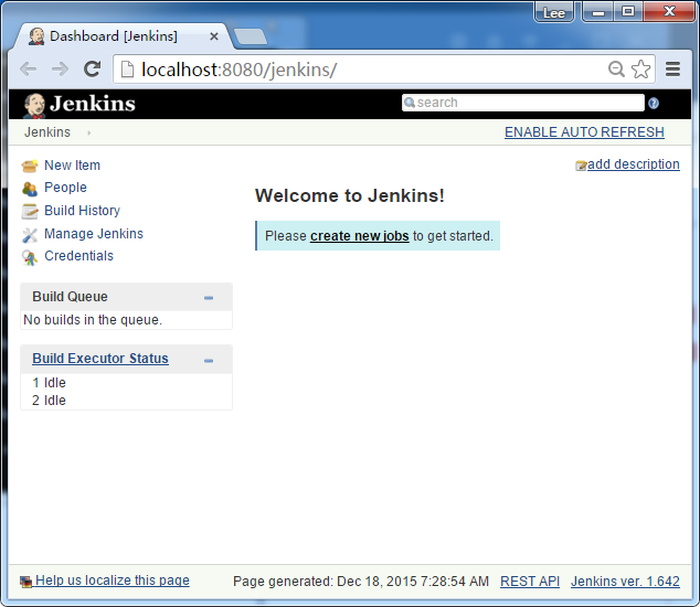 INFO: Server startup in 9468 ms打开浏览器,打开链接- http://localhost:8080/jenkins。Jenkins 将启动并 Tomcat 上运行。