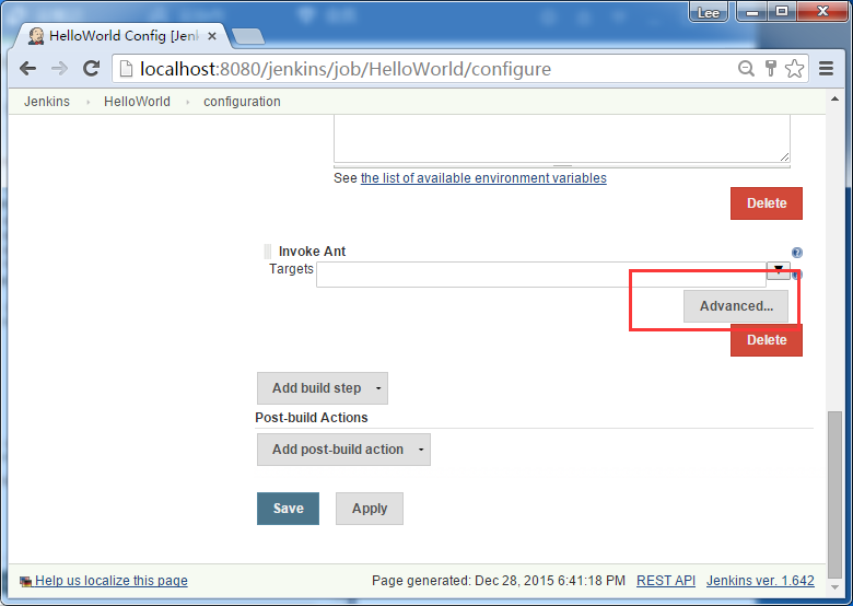 第2步 - 浏览到部分添加生成步骤和选择调用Ant选项。