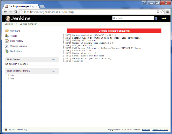 第6步- 点击备份管理器屏幕上的“Backup Hudson configuration”来启动备份。