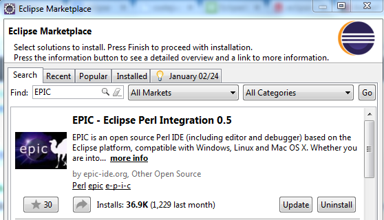 安装步骤:Help-->Eclipse Marketplace-->输入EPIC--> 选择安装并更新即可。